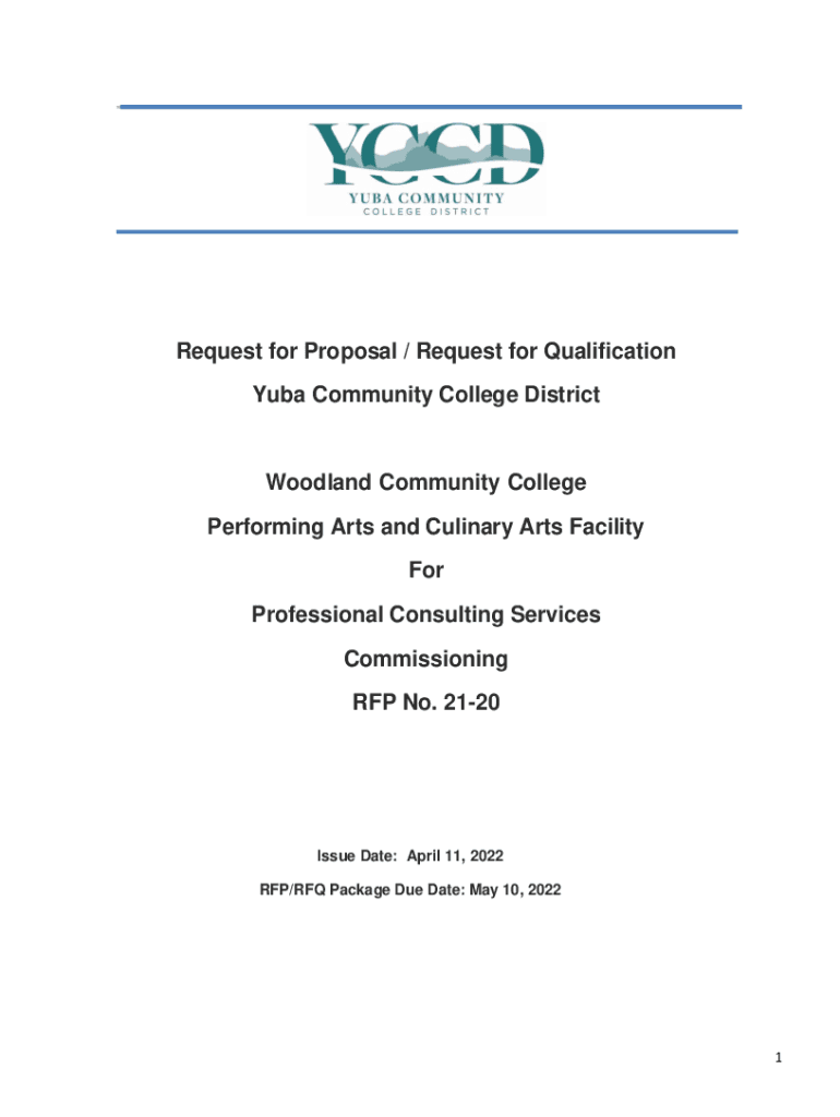 33Request for Proposal / Request for Qualification Cuba Community College District Woodland Community College Performing Arts and Culinary Arts Facility For Professional Consulting Services Commissioning