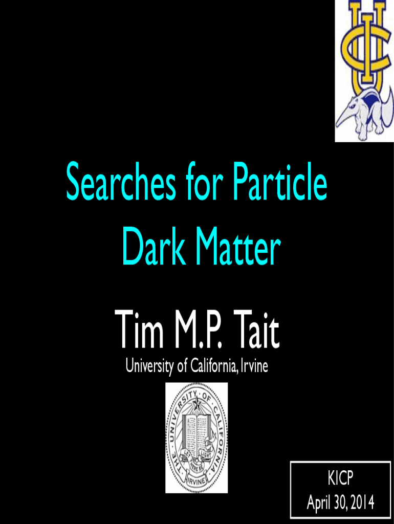 Searches for Particle Dark Matter Tim M.P. Wait University of California, IrvineKICP April 30, 2014Outline Motivation: Particle Dark Matter The Allure of Wimps The Importance of WIMPStandard Model