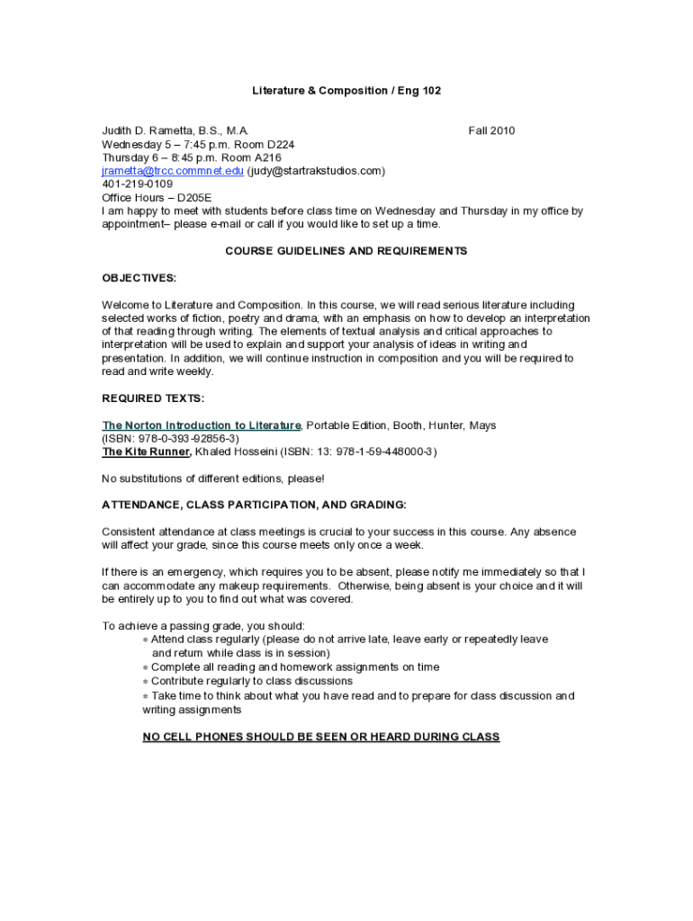 Get the free Literature & Composition / Eng 102 Judith D. Rametta, B.S. ...
