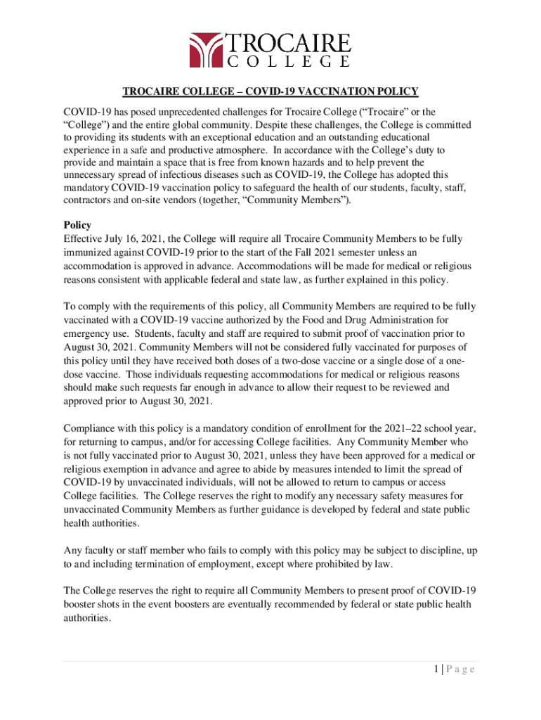 Get the free Trocaire to Require COVID-19 Vaccinations for All Students ... - About