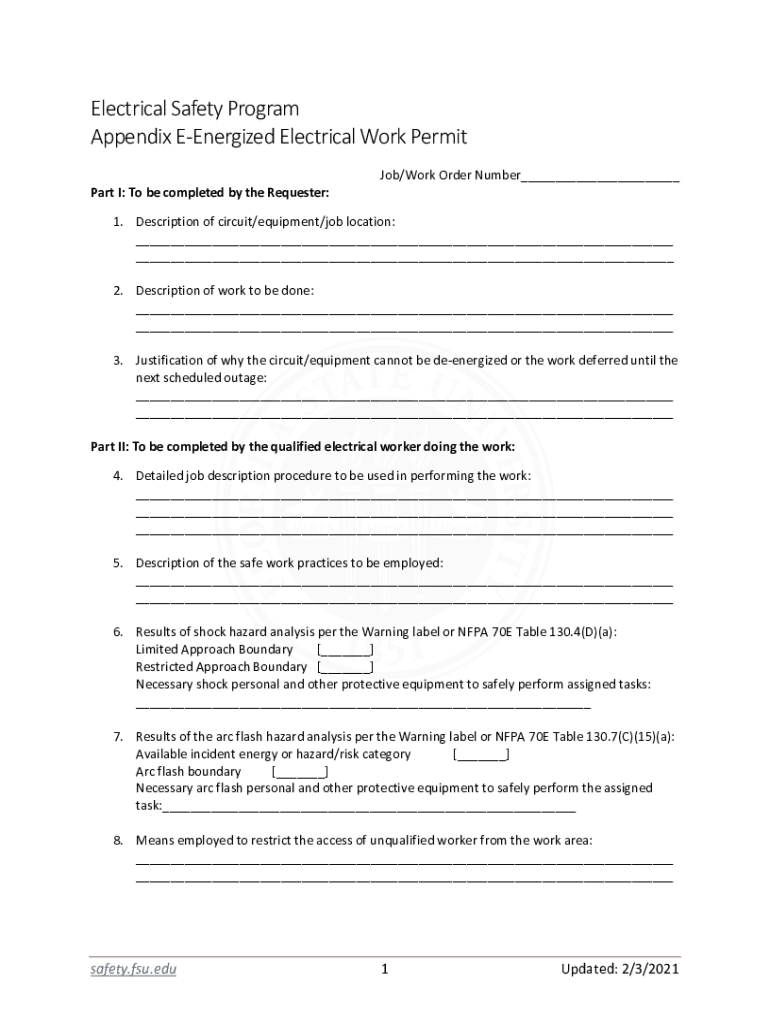 Get the free Electrical Safety Program Appendix E-Energized Electrical ...