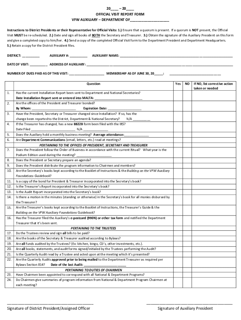 Fill out your vfwauxiliaryorgwp-contentuploads2020 official visit report online with pdfFiller!