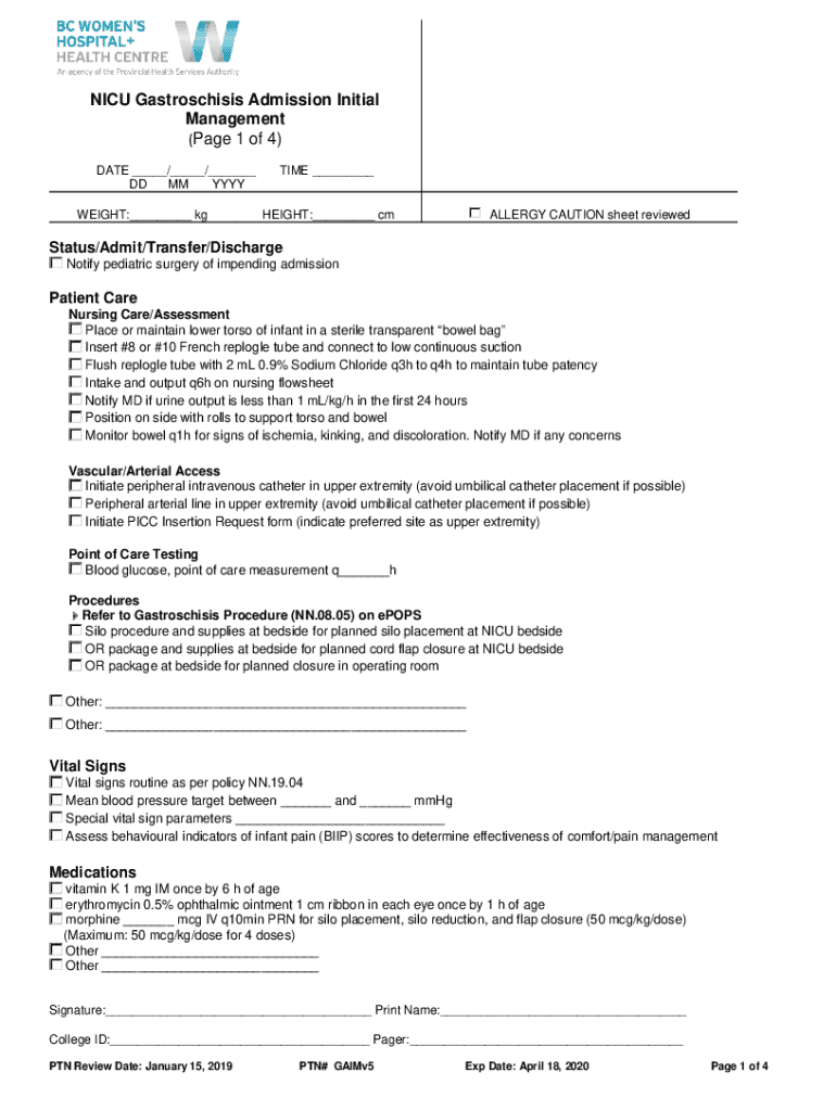 Get the free NICU Gastroschisis Admission Initial Management (Page 1 of 4) - policyandorders cw bc