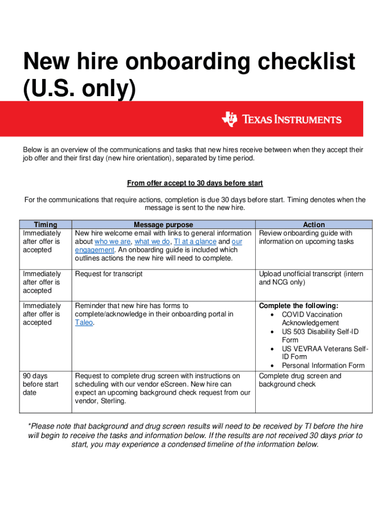 Below is an overview of the communications and tasks that new hires receive between when they accept their
