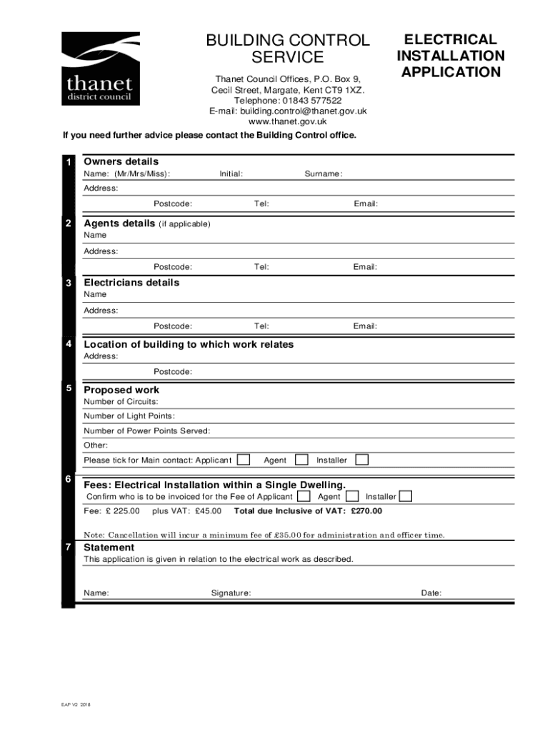 BUILDING CONTROL SERVICE Thant Council Offices, P.O. Box 9, Cecil Street, Margate, Kent CT9 1XZ. Telephone: 01843 577522 Email: building.control@thanet.gov.uk www.thanet.gov.ukELECTRICAL INSTALLATION