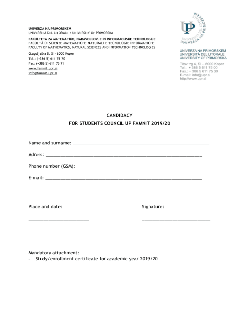 FAULTED ZA MATHEMATICS, NARAVOSLOVJE IN INFORMACIJSKE TECHNOLOGIZE