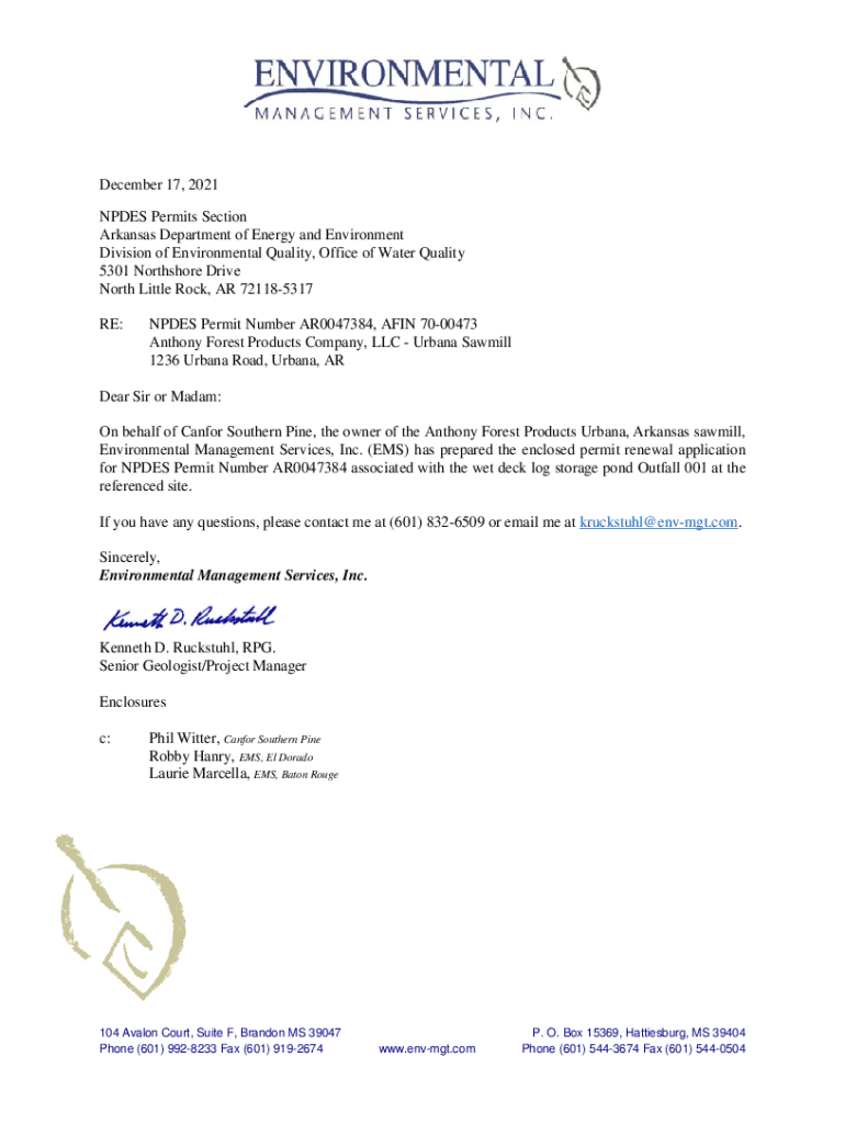 Get the free NPDES PERMIT RENEWAL APPLICATION - Arkansas Department of Energy and ...