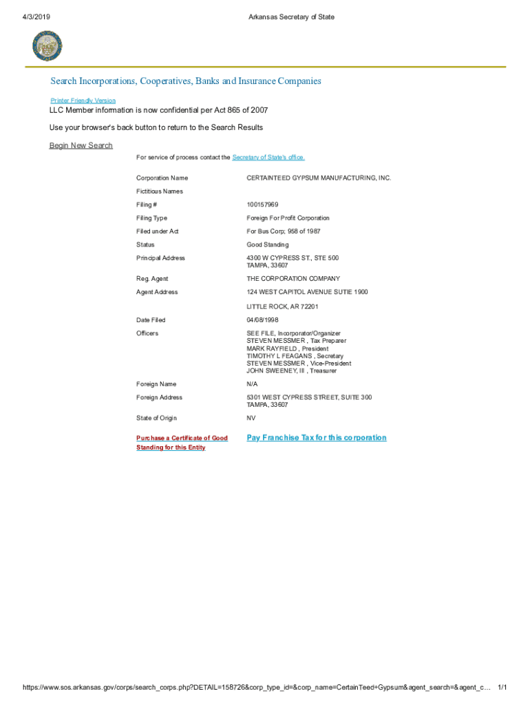 4/3/2019Arkansas Secretary of Statelier Incorporation, Cooperatives, Banks and Insurance Companies