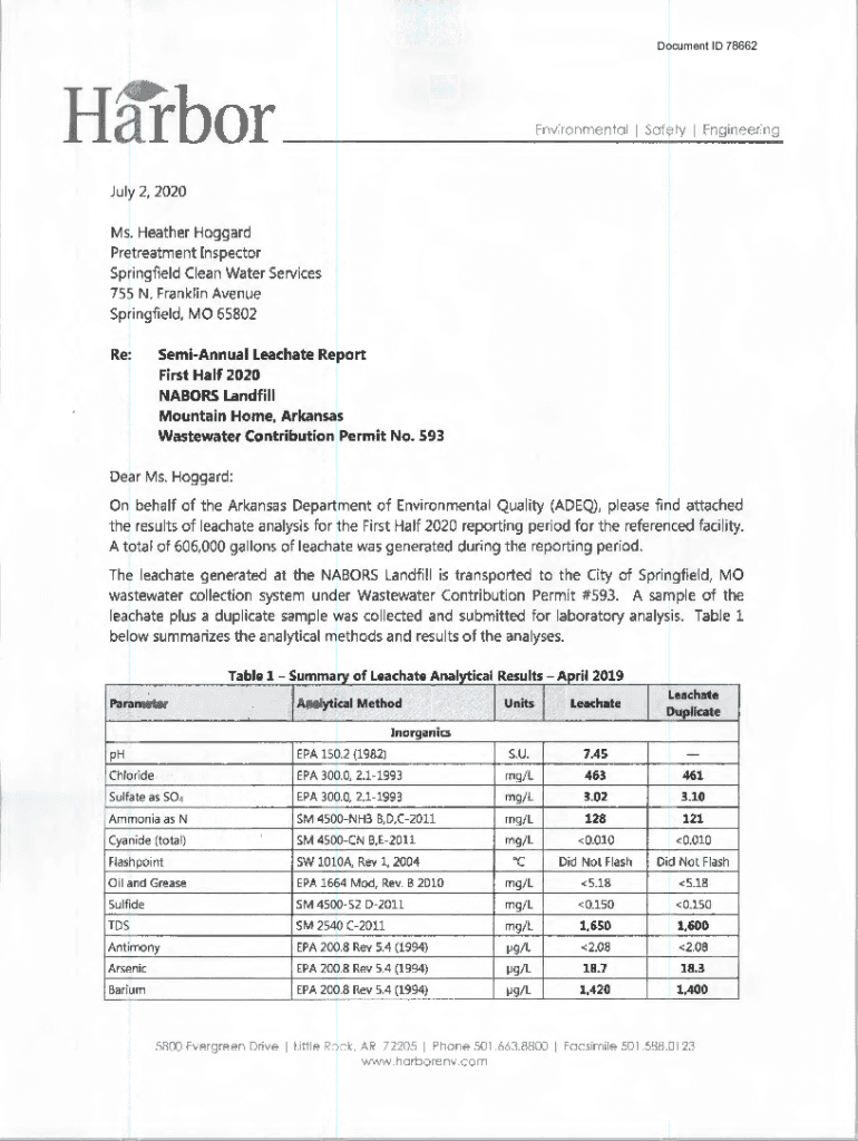 Document ID 78662JlJ[c:Jr’t\” l[:,’t\” ___.___En_gin_e_e_ri_n GE _n_v_ir_o_n_m_e_n_t_a_I_I_S_a_fe_ t_Y_ I__July 2, 2020, Ms. Heather Haggard Pretreatment Inspector Springfield Clean Water