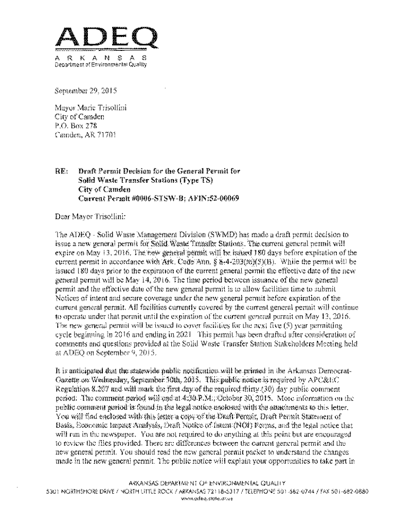Camden, AR 701RE:Draft Permit Decision for the General Permit for