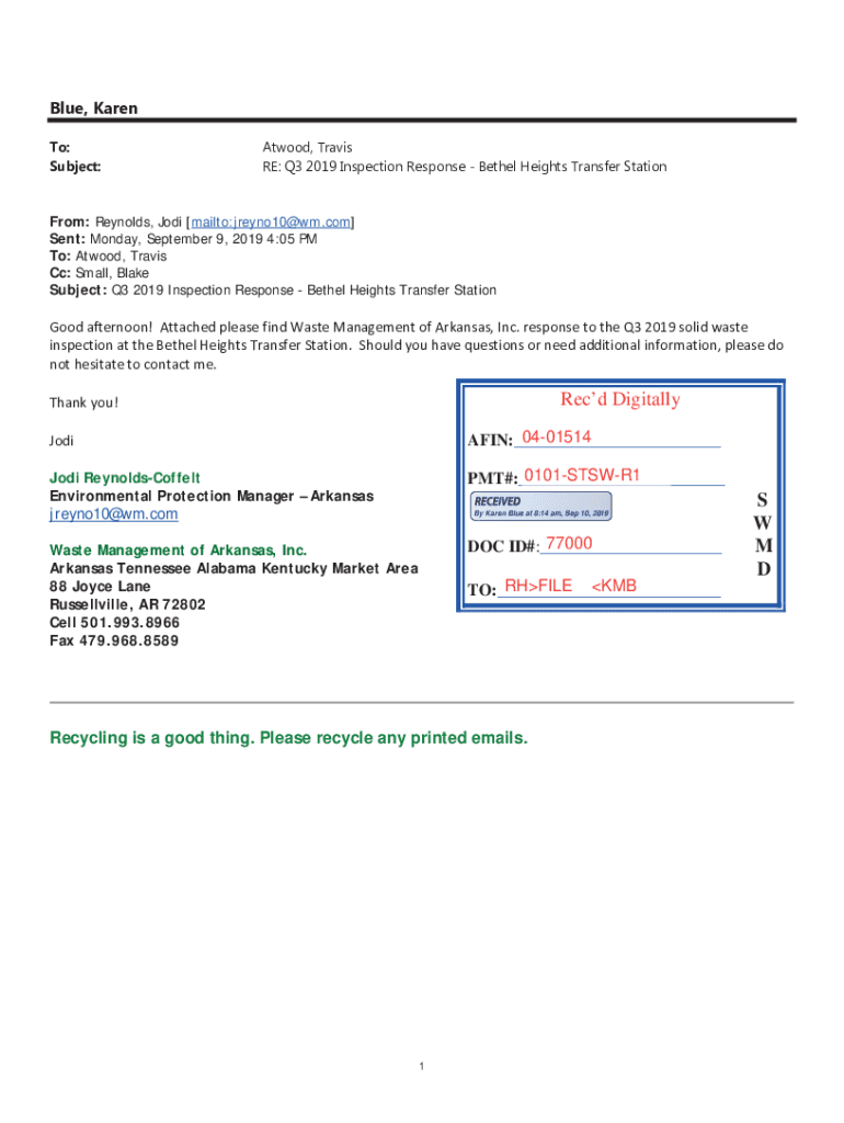 RE: Q3 2019 Inspection Response Ethel Heights Transfer Stationary: Reynolds, Jodi [mail to:jreyno10@wm.com]