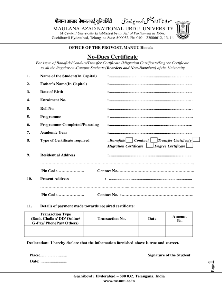 No-Dues Certificate - Manuu is not the form you're looking for?Search for another form here.