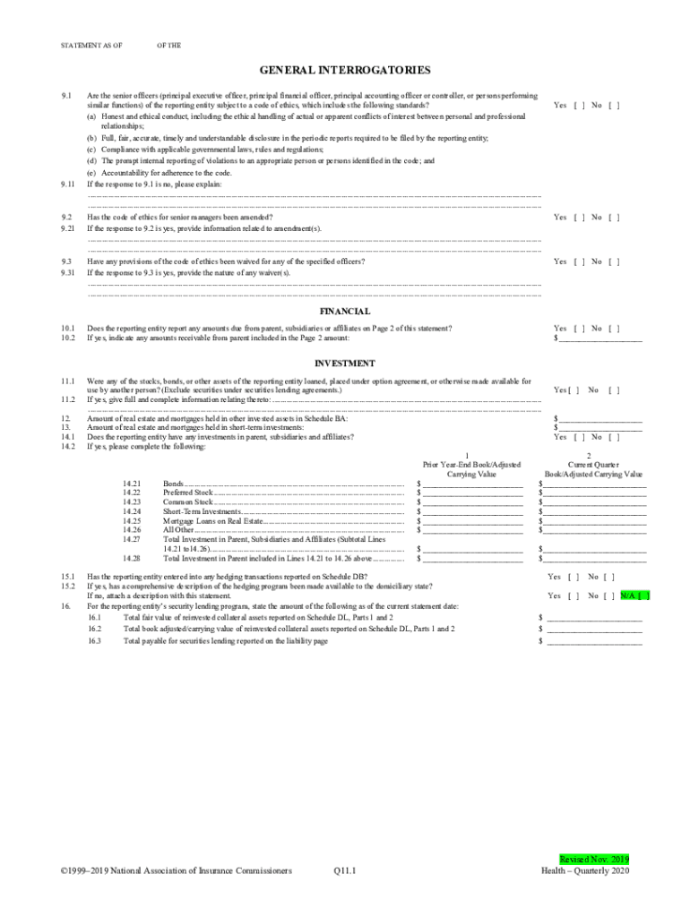 STATEMENT AS OFF GENERAL INTERROGATORIES 9.19.119.2 9.219.3 9.31Are the senior officers (principal executive officer, principal financial officer, principal accounting officer or controller, or persons