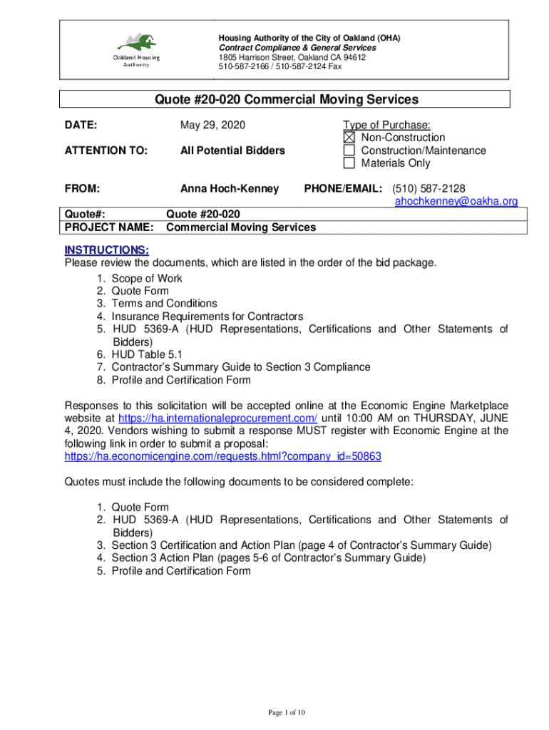 Get the free Quote #20-020 Commercial Moving Services - Oakland Housing ...