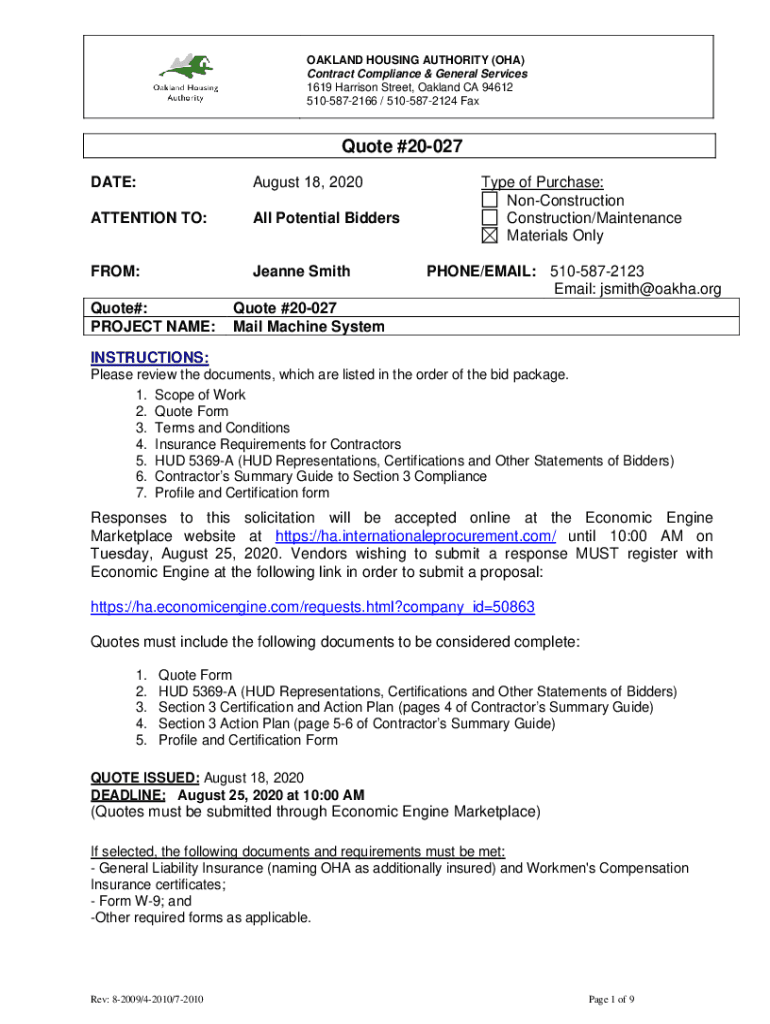 Get the free Quote #20-027 - Oakland Housing Authority