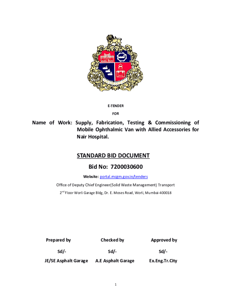 Nair Hospital. STANDARD BID DOCUMENT