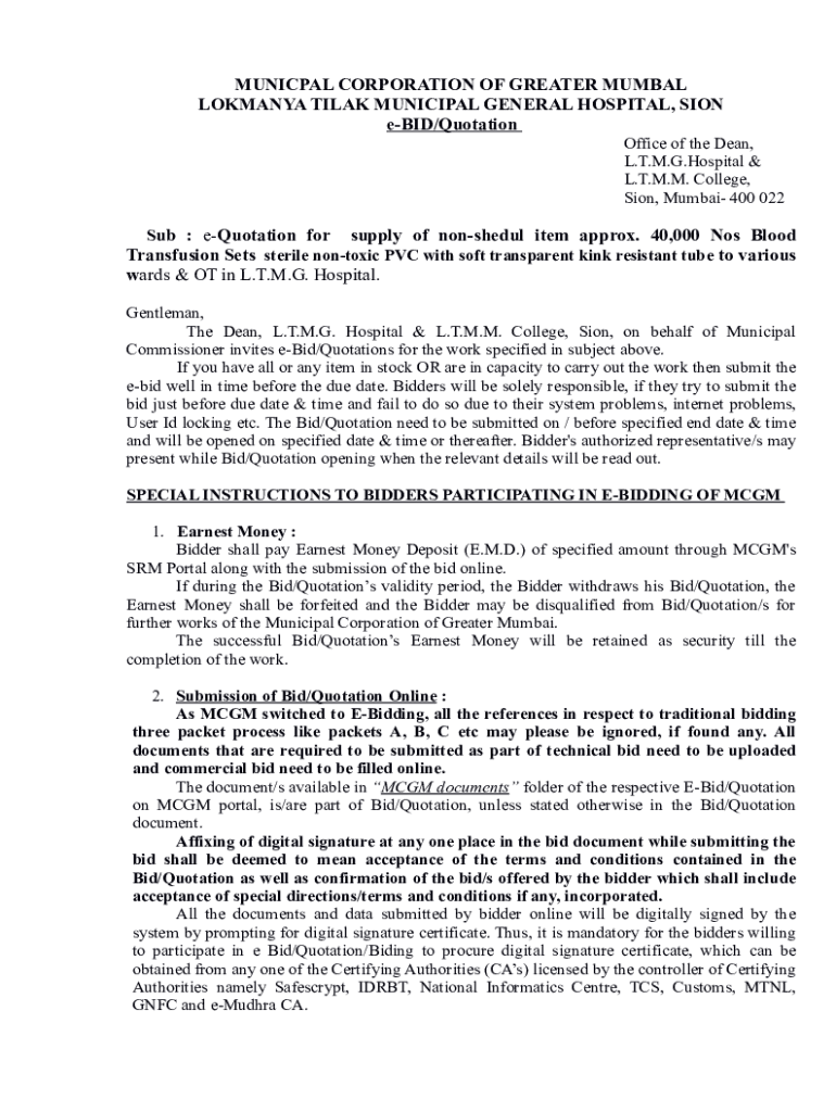 Get the free E Quotation Tender Terms Blood Set.odt