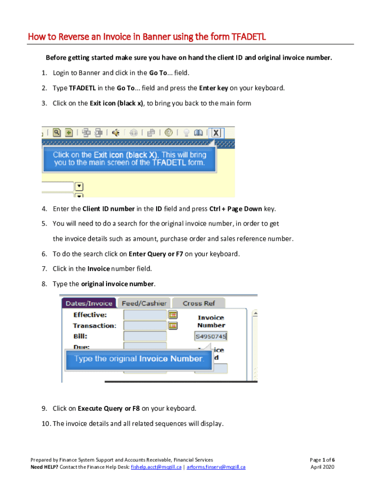 How to Reverse an Invoice in Banner using the form TRADE Before getting started make sure you have on hand the client ID and original invoice number. 1. Login to Banner and click in the Go To... field.