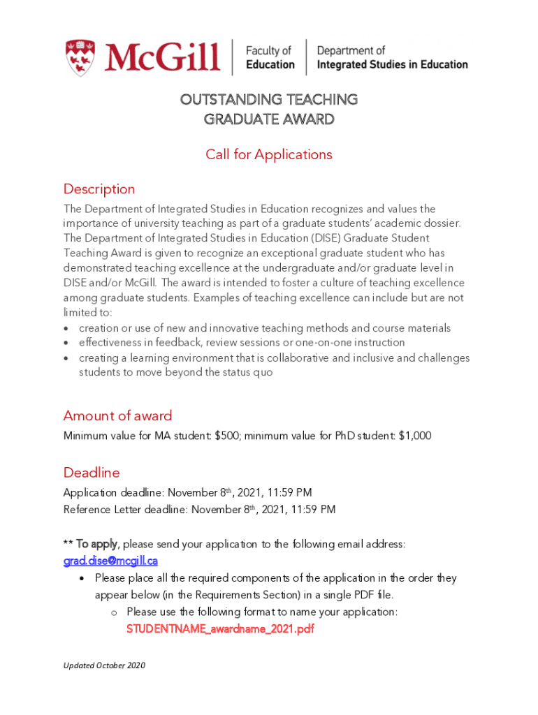 Fill out your outstanding graduate student awardkent online with pdfFiller!