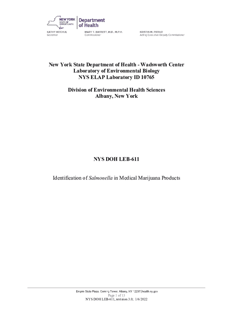 Get the free NYS DOH LEB-611 Identification of Salmonella in Medical ...