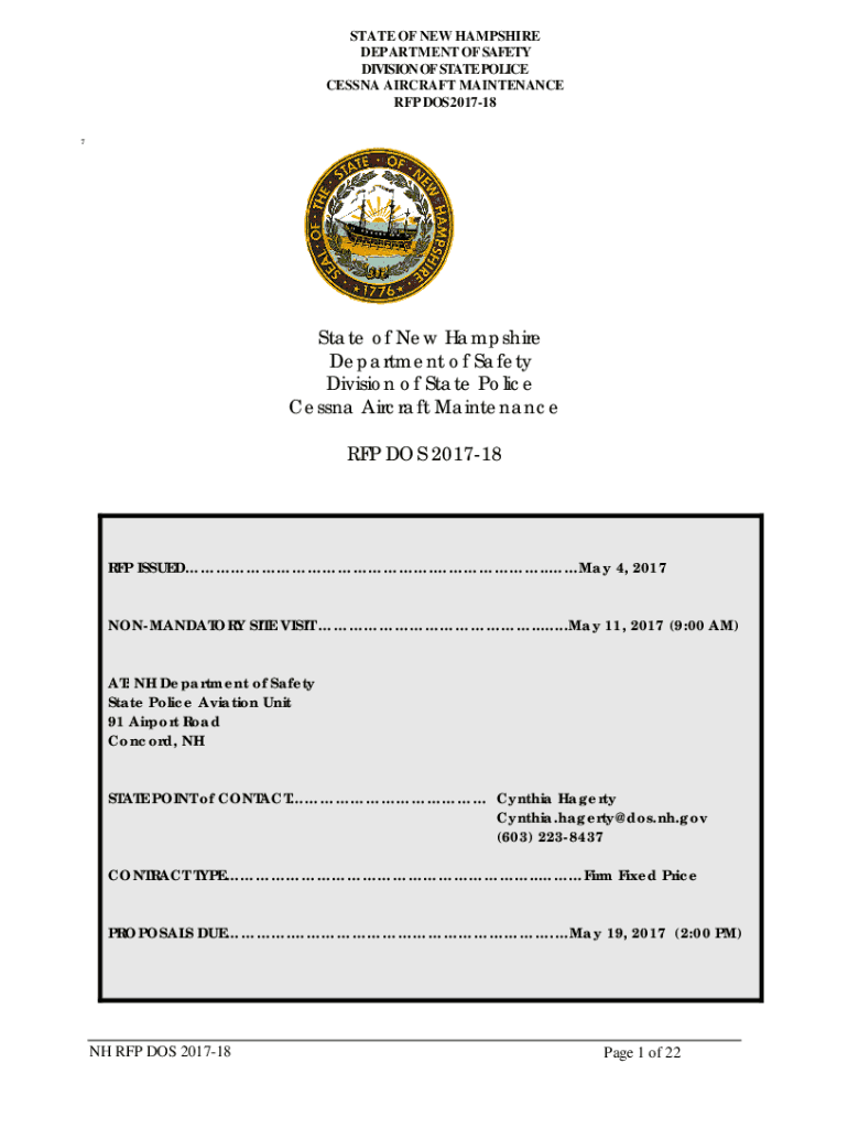 STATE OF NEW HAMPSHIRE DEPARTMENT OF SAFETY DIVISION OF STATE POLICE CESSNA AIRCRAFT MAINTENANCE RFP DOS 201718 7State of New Hampshire Department of Safety Division of State Police Cessna Aircraft