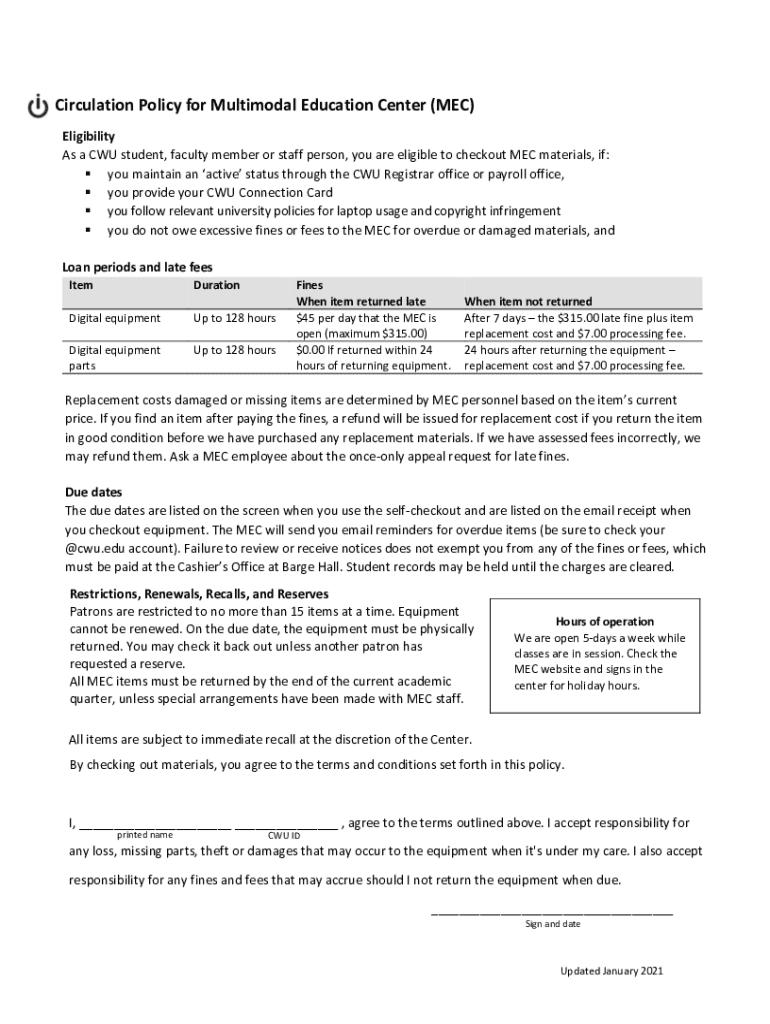 Get the free Circulation Policy for Multimodal Education Center (MEC)