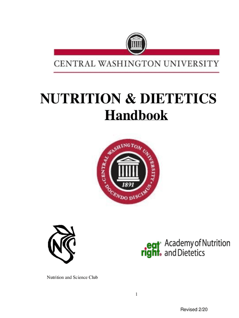 NUTRITION & DIETETICS HandbookNutrition and Science Club1 Revised 2/20Welcome to Nutrition and Dietetics Dear Prospective Nutrition and Dietetic Student: The Nutrition and Dietetic specialization