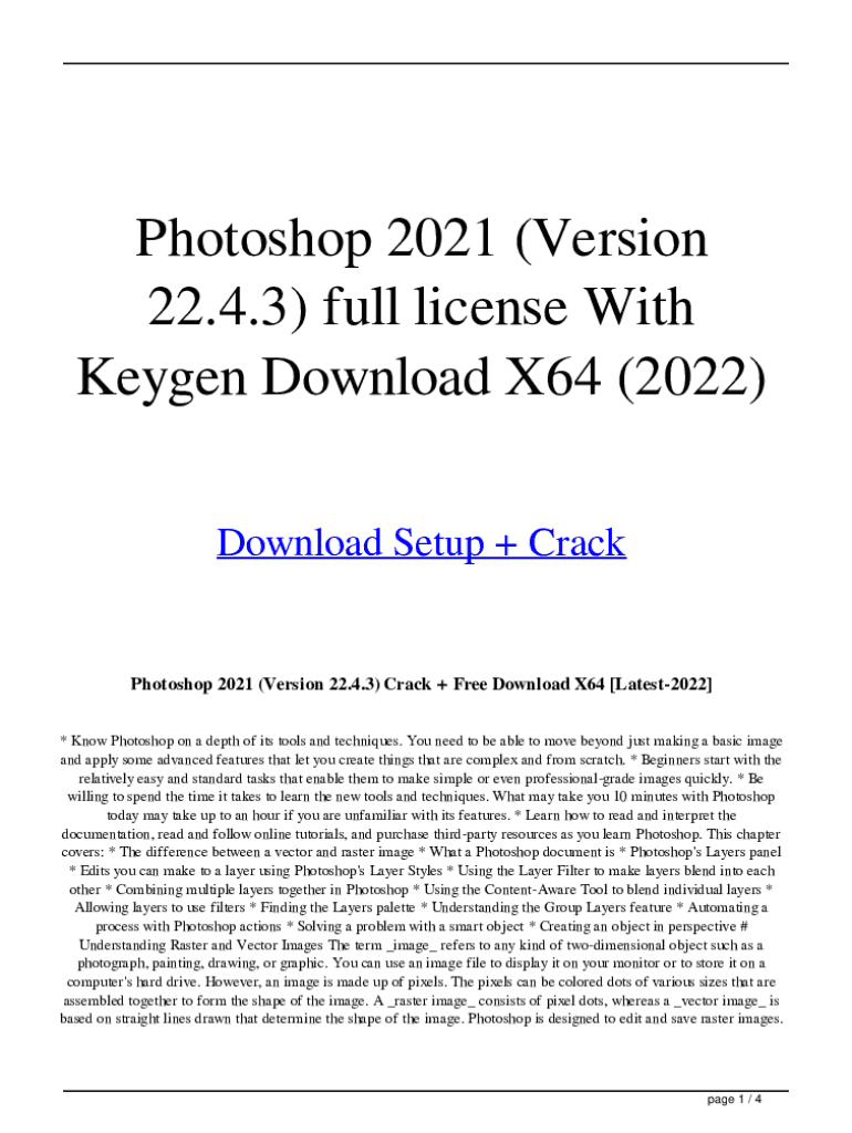 This document provides a guide on Photoshop 2021, including its tools, features, and a tutorial for creating photo collages, along with system requirements and related download links.
