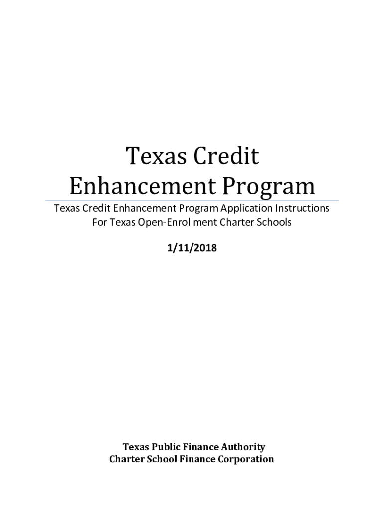 Texas CreditEnhancement ProgramTexasCreditEnhancementProgramApplicationInstructions ForTexasOpenEnrollmentCharterSchools1/11/2018 Texas Public Finance AuthorityCharter School Finance Corporation Table