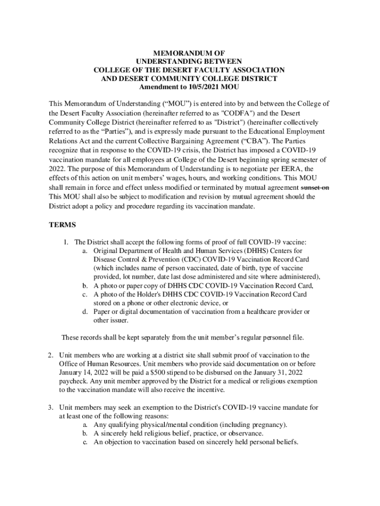 Get the free Amendment to 10/5/2021 MOU - College of the Desert