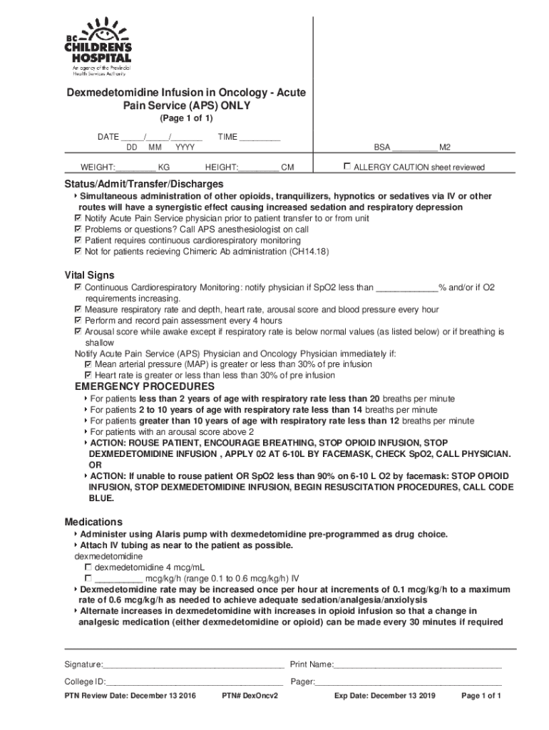 Infusion in Oncology Acute Pain Service (APS) ONLY (Page 1 of 1) DATE ___/___/___ DD MM YYY WEIGHT:___ KG TIME ___ BSA ___ M2 HEIGHT:___ ALLERGY CAUTION sheet reviewedStatus/Admit/Transfer/Discharges