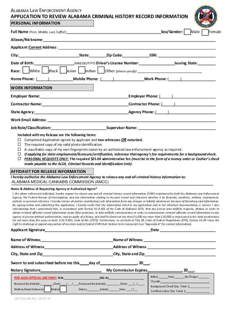 Get the free FORM C: State Background Check (ALEA) The application for the ...