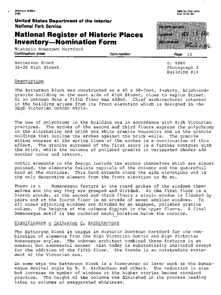 Storm 10900a (382)0 MB No. 10240018 Exp. 103184United States Department of the International Park ServiceNational Register of Historic Places Inventory Nomination Form Historic Downtown Hartford