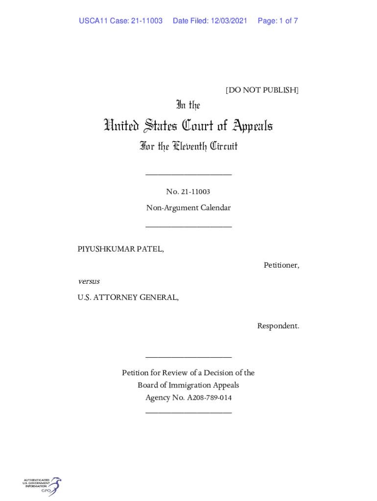 USCA11 Case: 2111003Date Filed: 12/03/2021Page: 1 of 7[DO NOT PUBLISH]In reunited States Court of Appeals For the Eleventh Circuit ___ No. 2111003 Argument Calendar ___ PIYUSHKUMAR PATEL, Petitioner,