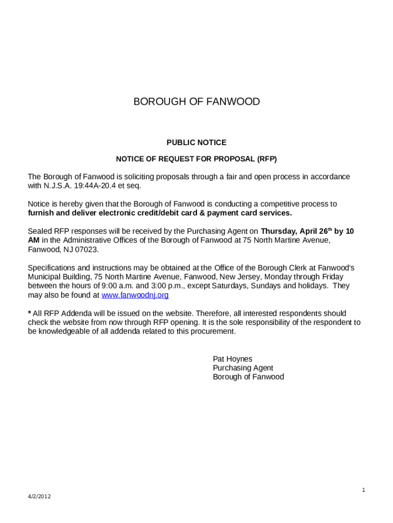 Instructions for the NOTICE OF REQUEST FOR PROPOSAL (RFP) - Borough of Fanwood form