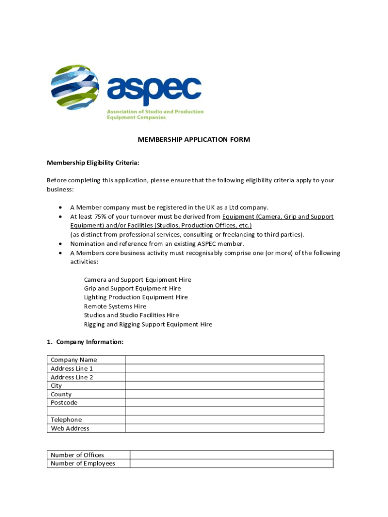 MEMBERSHIP APPLICATION FORM Membership Eligibility Criteria: Before completing this application, please ensure that the following eligibility criteria apply to your business: A Member company must