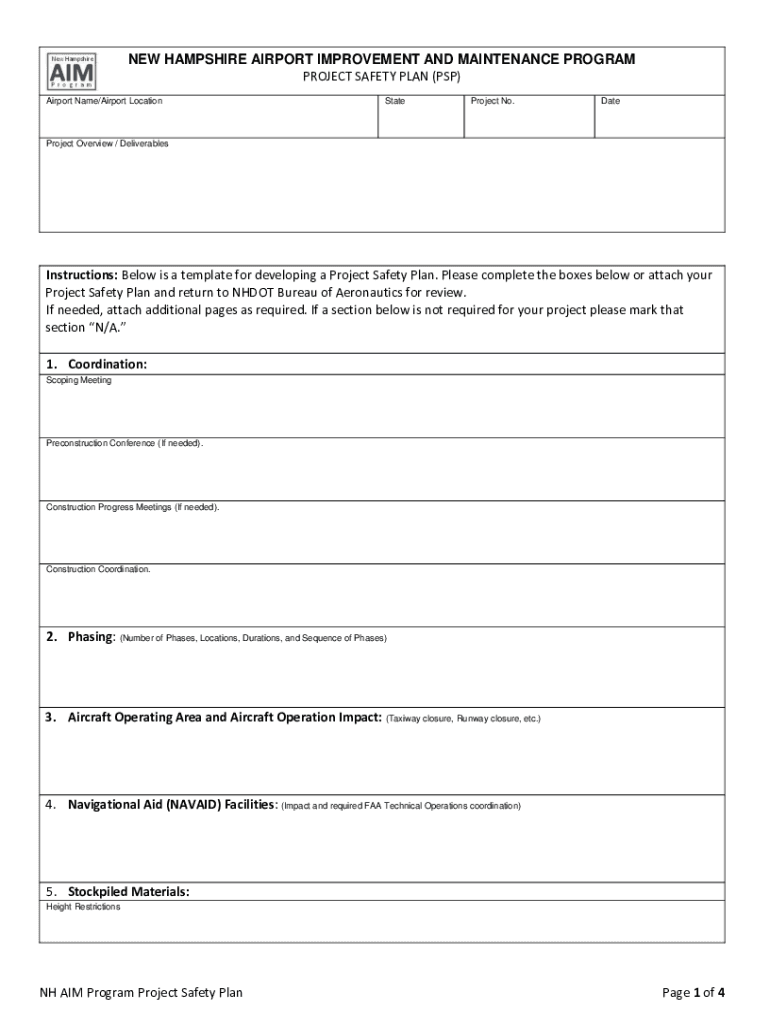 Get the free NH AIM Program Project Safety Plan Page 1 of 4 NEW HAMPSHIRE ...