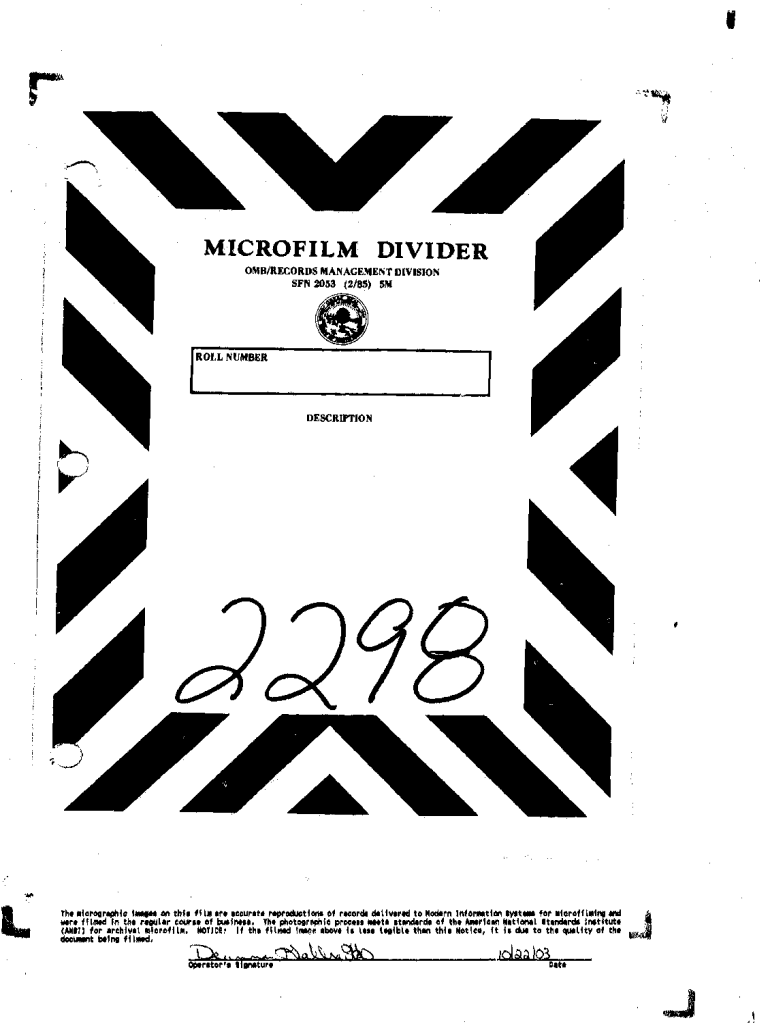 SON 2053 (2/85) SM[ROLL NUMBERIDESCRIPTION, THT Mfcroartphfo, .... on THF ft hi 1r11ccur1tt reproduction of record dttfwrld to Modern lnforNtlon