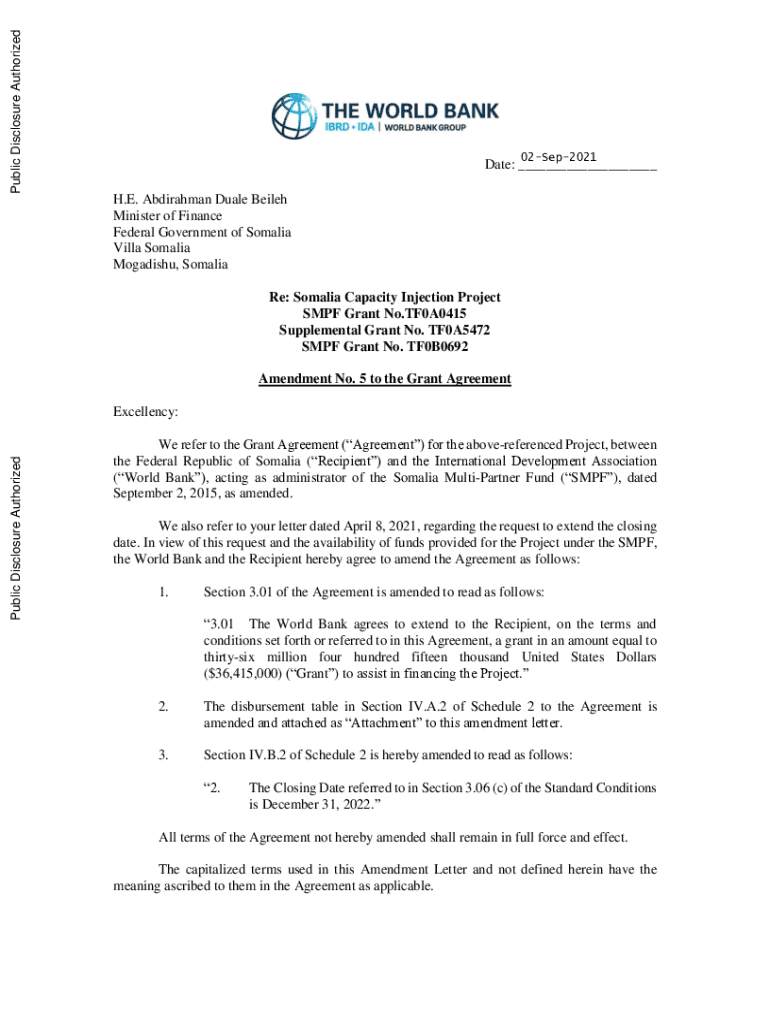 Public Disclosure Authorized Public Disclosure Authorized Public Disclosure Authorized Public Disclosure Authorized02Sep2021Date: ___ H.E. Abdirahman Dual Bales Minister of Finance Federal Government