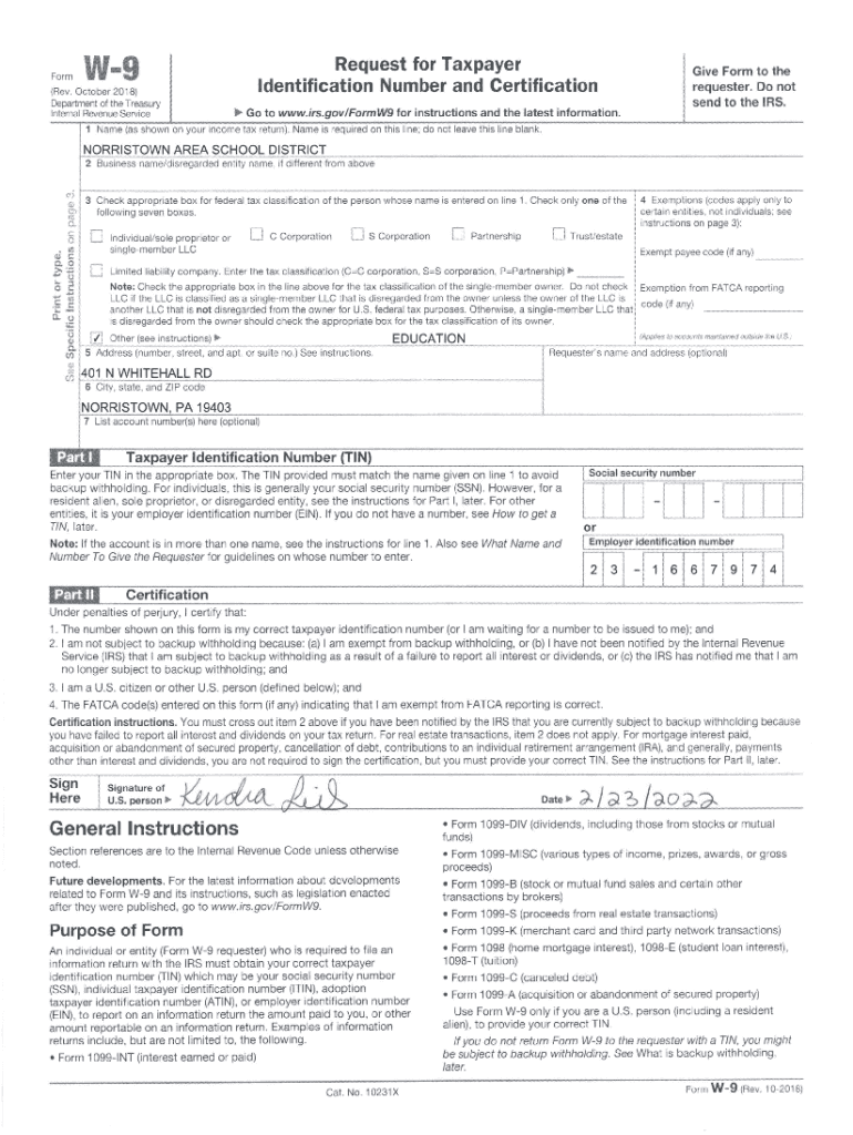 Request for Taxpayer Identification Number and CertificationW9Give Form to the requester. Do not send to the IRS. Form (Rev. October 2018) Department of the Treasury Go to www.irs.gov/FormW9 for instructions