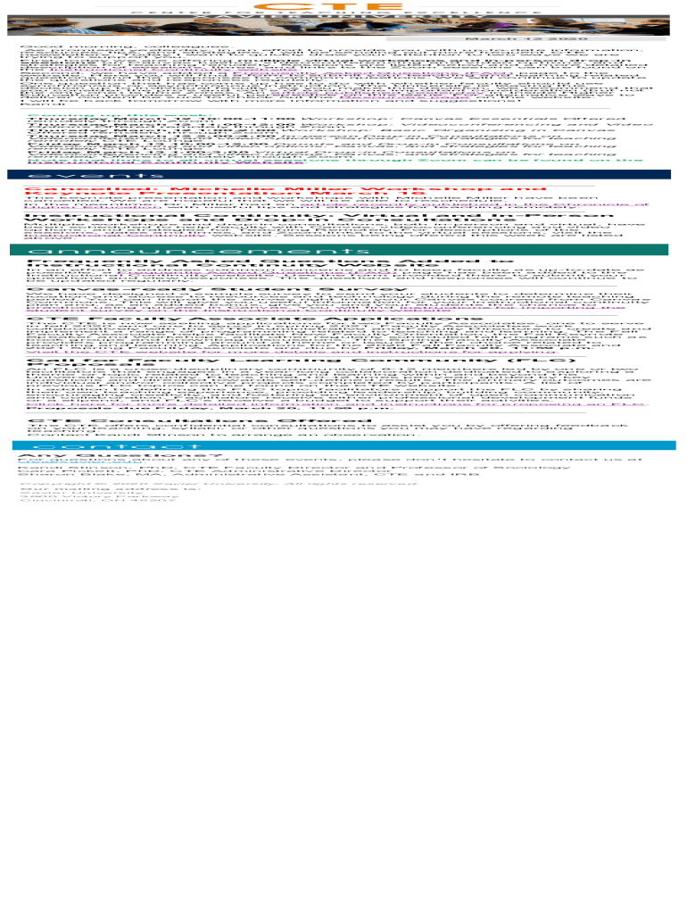 March 12 2020Good morning, colleagues. As promised yesterday, in an effort to provide you with update information, resources, tips, and strategies, I will be sending out more frequent CTE newsletters.