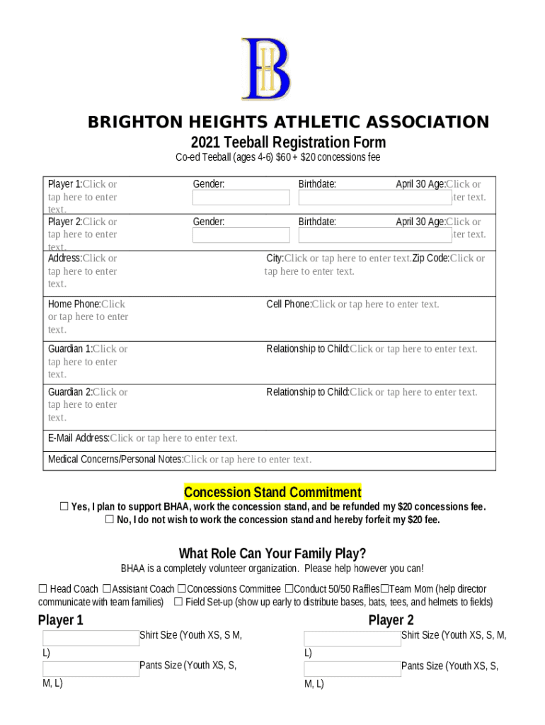What is Brighton Heights Athletic Association registration now open Form?