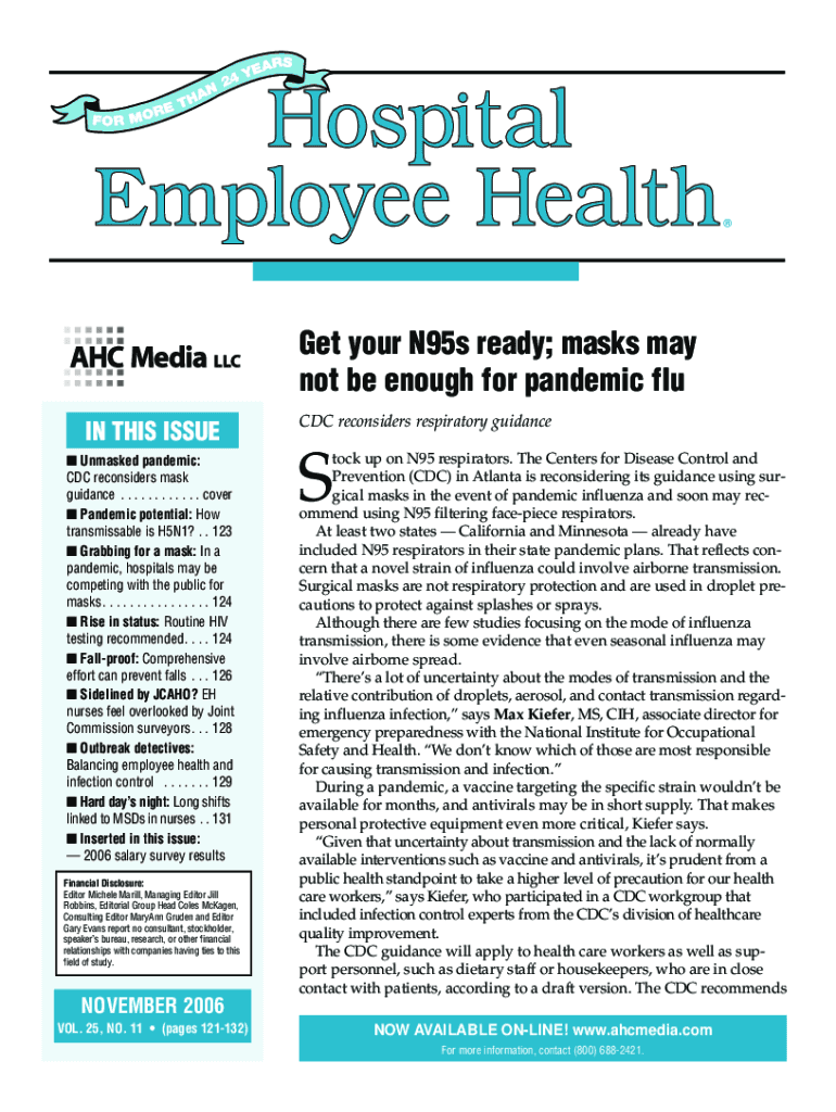 24Get your N95s ready; masks may not be enough for pandemic flu IN THIS ISSUE Unmasked pandemic: CDC reconsiders mask guidance. . . . . . . . . . . . Cover Pandemic potential: How transmissible is
