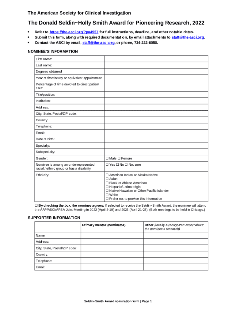 The Rajan Jain receives 2021 SeldinSmith Award for Pioneering Research ... is a fillable form in MS Word extension that has to be completed and signed for specific needs. Next, it is furnished to the exact addressee in order to provide specific info of any kinds. The completion and signing is possible in hard copy by hand or via a trusted service e. g. PDFfiller. Such tools help to submit any PDF or Word file without printing them out. It also allows you to customize its appearance depending on your requirements and put a legal e-signature. Once finished, the user sends the Rajan Jain receives 2021 SeldinSmith Award for Pioneering Research ... to the respective recipient or several of them by email and even fax. PDFfiller offers a feature and options that make your Word template printable. It offers a variety of options for printing out appearance. It does no matter how you'll file a form after filling it out - physically or by email - it will always look neat and organized. To not to create a new editable template from the beginning over and over, turn the original form as a template. Later, you will have an editable sample.