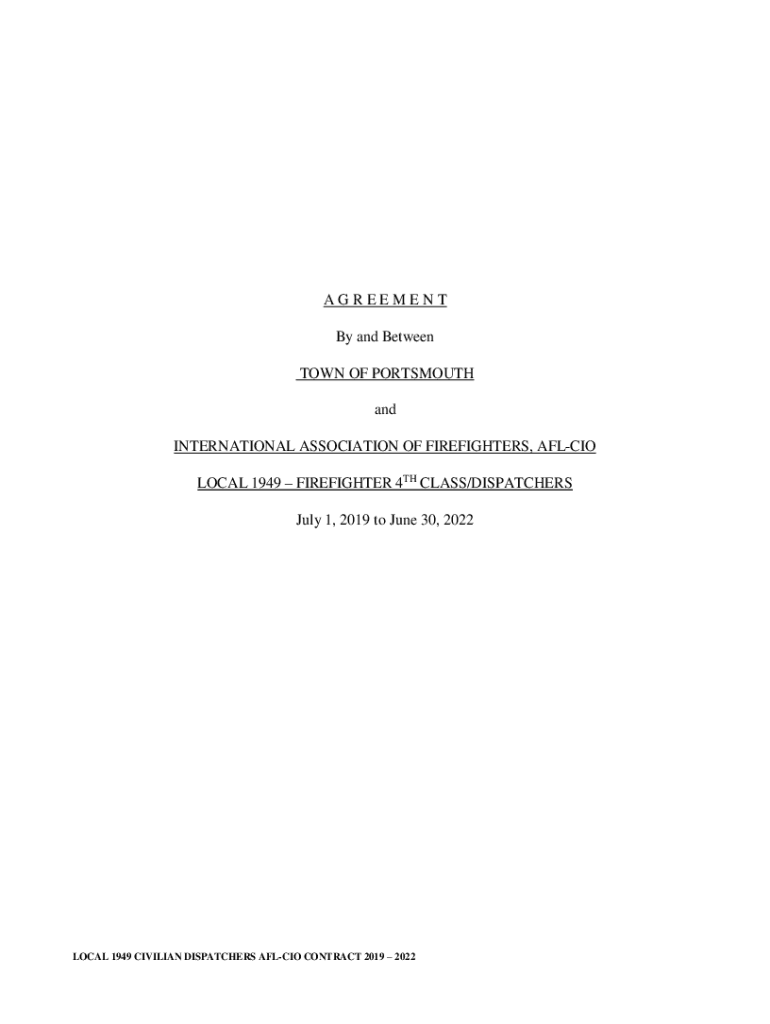 AGREEMENT By and Between TOWN OF PORTSMOUTH and INTERNATIONAL ASSOCIATION OF FIREFIGHTERS, AFL CIO LOCAL 1949 FIREFIGHTER 4TH CLASS/DISPATCHERS July 1, 2019, to June 30, 2022LOCAL 1949 CIVILIAN DISPATCHERS