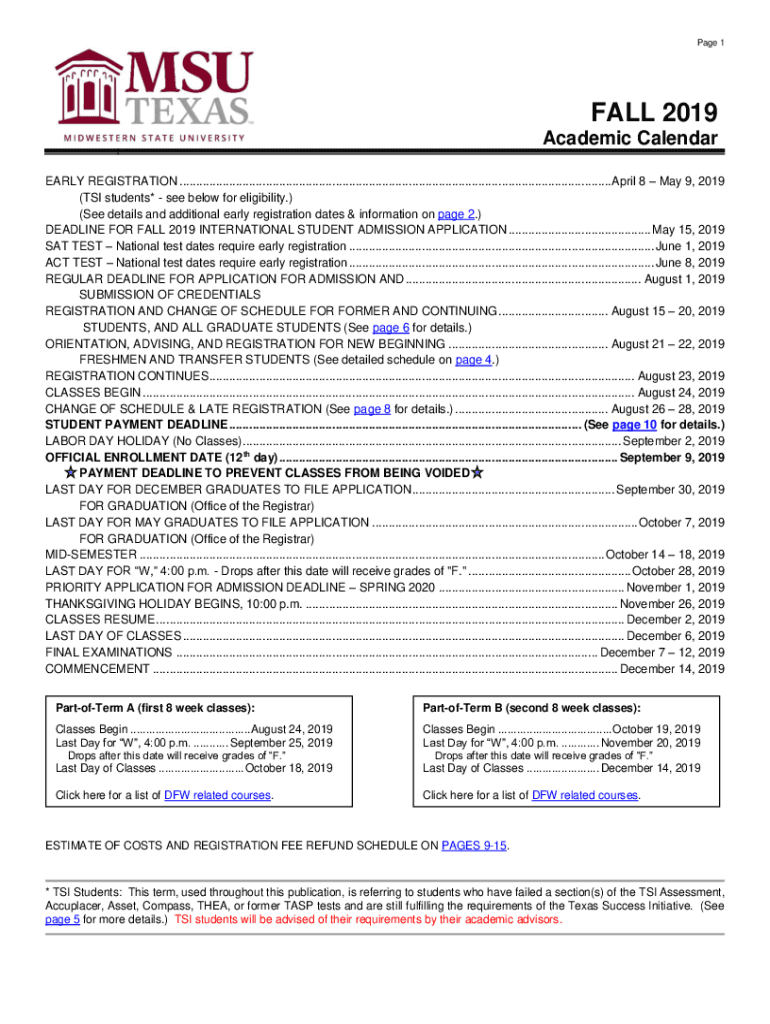 Page 1FALL 2019 Academic Calendar EARLY REGISTRATION .................................................................................................................................. April 8 May