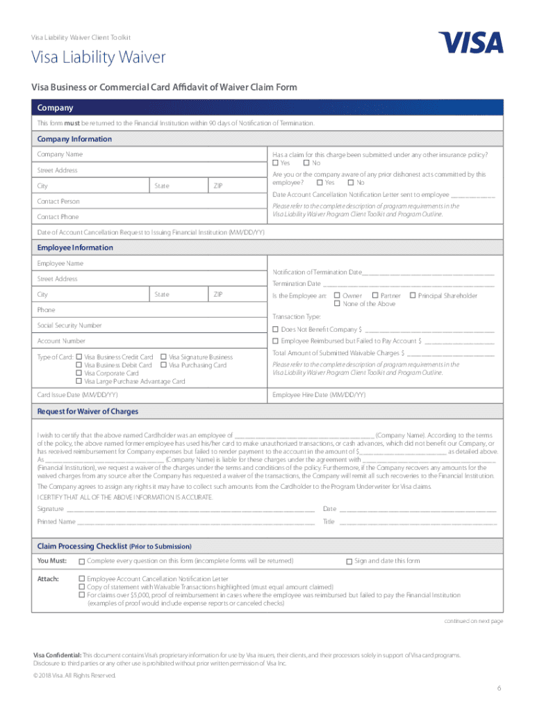 Visa U.S.A. Inc. Visa Liability Waiver Client ToolkitSecurity and coverage when providing Visa Business and Commercial cards to employees startedSecurity. Coverage. Confidence. Now you can provide