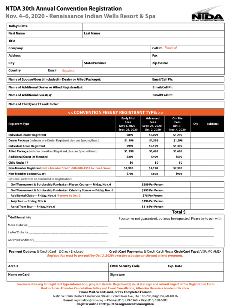 NTD 30th Annual Convention Registration Nov. 46, 2020 Renaissance Indian Wells Resort & Spa Today's Date First Nameless Nettle CompanyCell pH RequiredAddressFaxCityState/ProvinceCountryEmailZip/PostalRequiredName