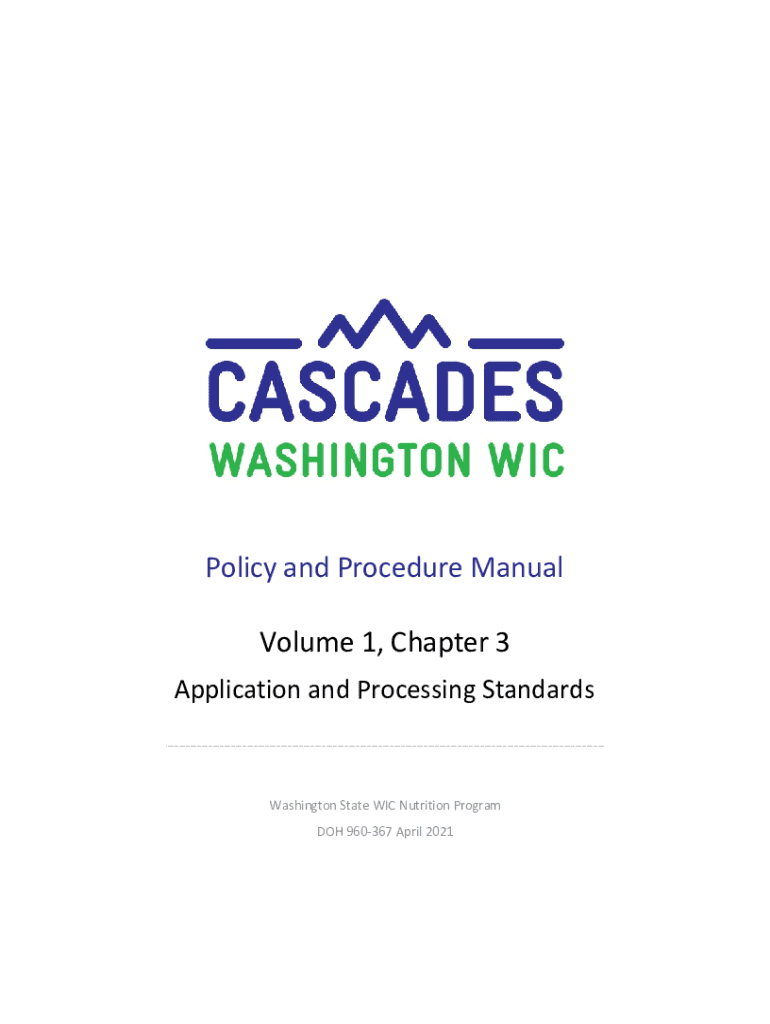 Policy and Procedure Manual Volume 1, Chapter 3 Application and Processing Standards Washington State WIC Nutrition Program DOH 960367 April 2021This institution is an equal opportunity provider.