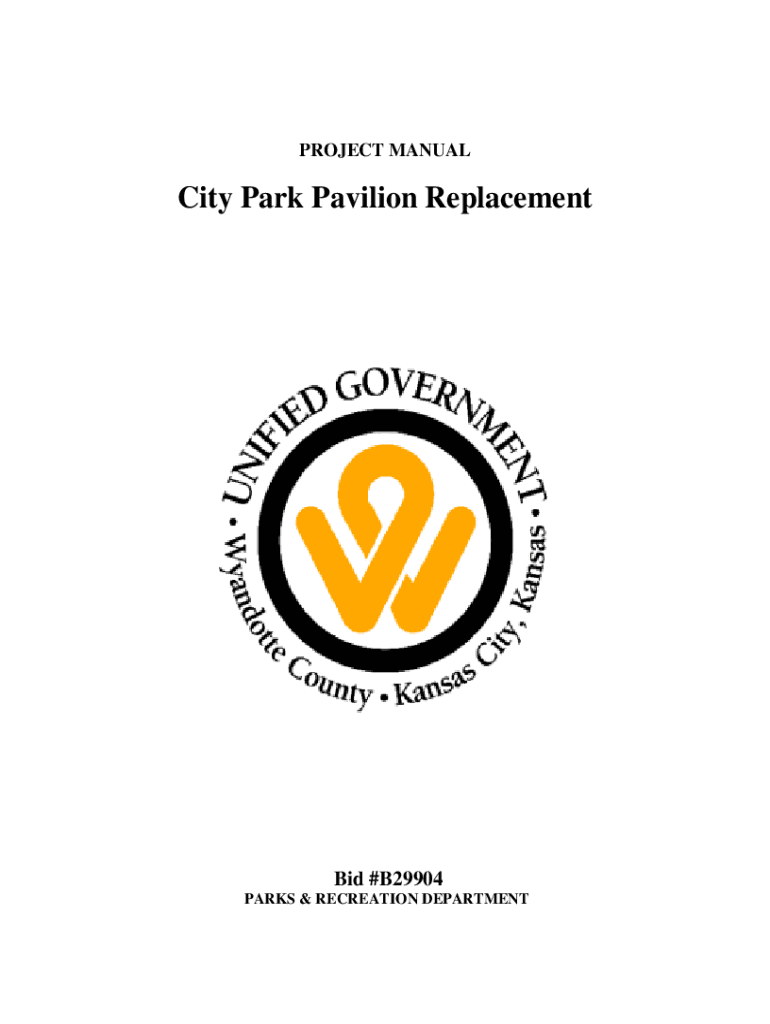 PROJECT Manually Park Pavilion Replacement #B29904 PARKS & RECREATION DEPARTMENTUNIFIED GOVERNMENT OF WYANDOTTE COUNTY/ KANSAS CITY, KANSAS CONTRACT DOCUMENTS Forcing Park Pavilion Replacement for